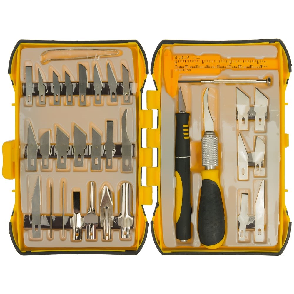 Набор резцов по дереву STAYER PROFI 33 шт 1831-H33 используется для фигурной резки по бумаге, картону, твердой и мягкой древесине, пластмассе. Благодаря разнообразной форме резцов можно вырезать практически любой рисунок. Лезвия выполнены из инструментальной закаленной стали, гарантирующей прочность и долгий срок службы. Двухкомпонентные рукоятки обеспечивают комфортную работу. Набор поставляется в пластиковом боксе, удобном для хранения и транспортировки.