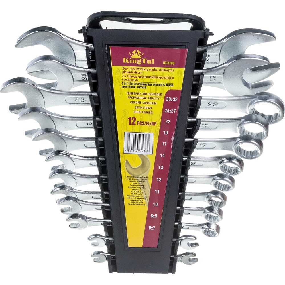 Набор комбинированных и рожковых ключей KINGTUL — это универсальный комплект для работы с крепежом в условиях ограниченного доступа. Каждый ключ сочетает в себе рожковую и накидную части, что делает его особенно удобным при ремонте автомобилей, мототехники, спецтехники и в бытовых задачах.Ключи изготовлены из прочной хромованадиевой стали, устойчивой к механическим нагрузкам и коррозии. Компактная упаковка и продуманный состав делают набор идеальным выбором как для автолюбителей, так и для профессиональных мастеров.Преимущества:Двойная функциональность Комбинированная конструкция (рожковая + накидная часть) позволяет использовать ключи в разных ситуациях — от быстрого откручивания до работы с нагруженными соединениями.Прочность и надёжность Хромованадиевая сталь обеспечивает высокую устойчивость к износу, механическим нагрузкам и коррозии.Компактность хранения Пластиковый держатель предотвращает потерю ключей и обеспечивает удобный доступ к каждому инструменту.Сбалансированный состав Включены только самые востребованные размеры от 6 до 32мм. ключей.Универсальность применения Подходит для ремонта легковых и грузовых автомобилей, квадроциклов, снегоходов, садовой техники и других механизмов.Работа в труднодоступных местах Удобная форма и компактные размеры позволяют использовать ключи там, где обычный инструмент не справится.