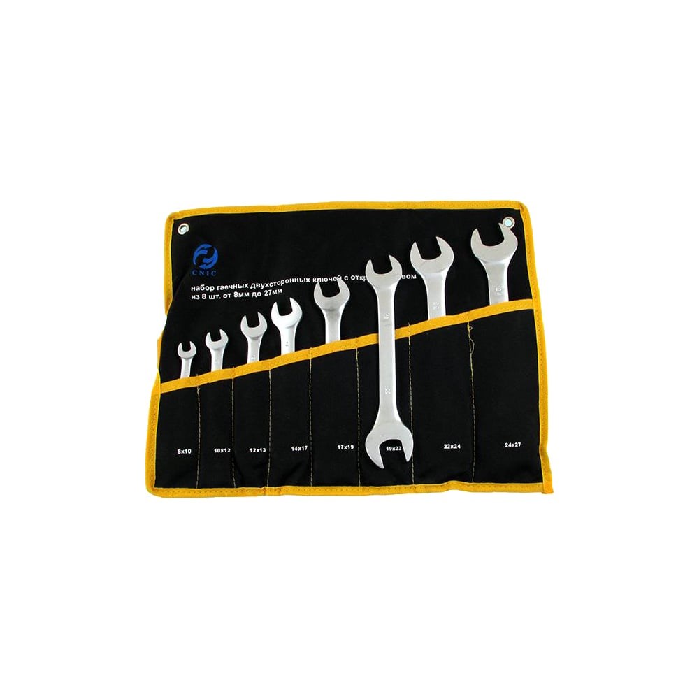 Набор ключей CNIC рожковых из 8-ми шт. 8x10 - 24x27 в сумке хром-ванадий 865 20683 охватывает самые часто используемые размеры инструмента. За счет этого повышается универсальность использовани набора.Ключи выполнены из прочной стали - они имеют значительный ресурс и выдерживают высокие нагрузки. Комплект имеет защиту от влаги - ключи можно использовать в условиях повышенной влажности без риска возникновения коррозии.