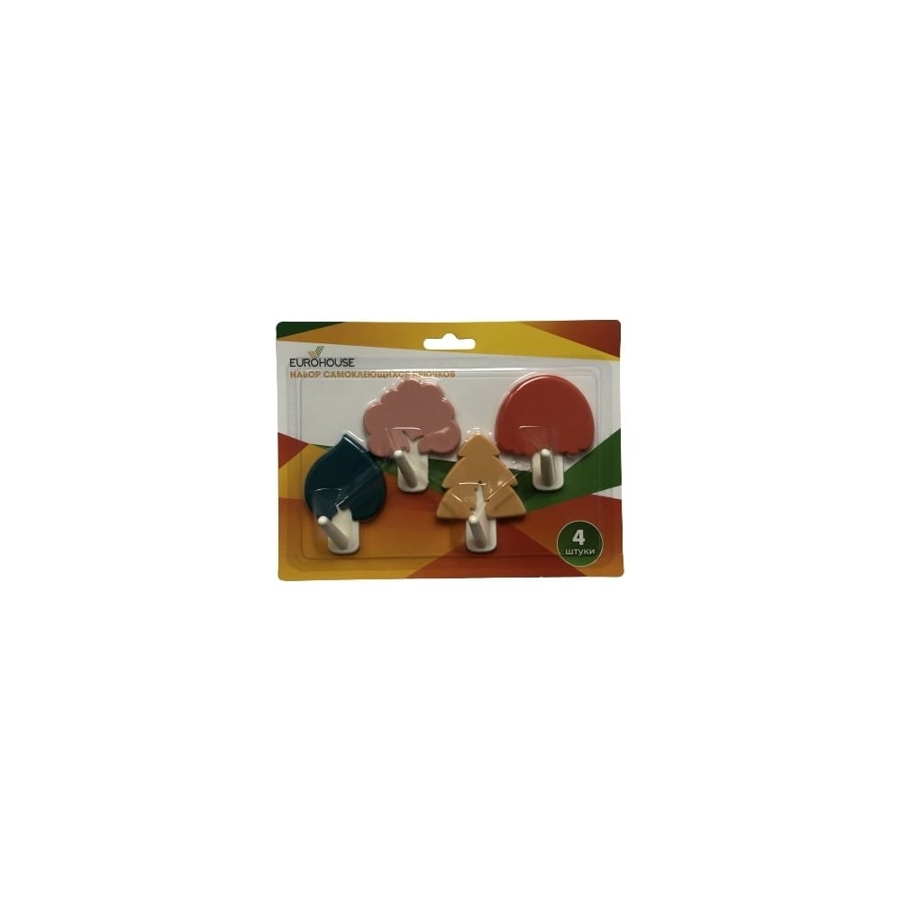 Набор самоклеящихся крючков EUROHOUSE цветные, 4 шт. 14124 предназначен для подвешивания различных кухонных и банных принадлежностей на вертикальных поверхностях. Прекрасно подойдут для ванной комнаты или кухни и не займут много места, надежно выдерживают нагрузку до 2 кг. Состав: АБС-пластик, полистирол, клеевой слой, силиконизированная бумага.