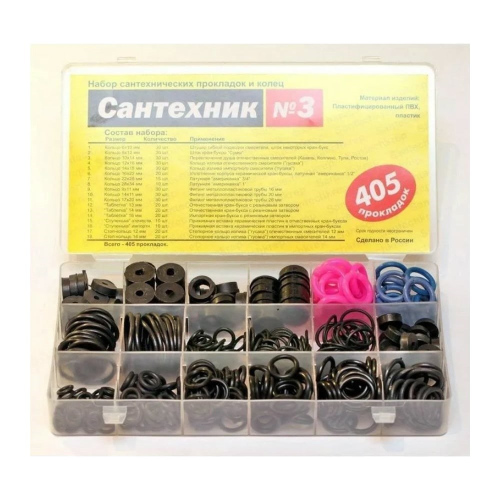 Набор Сантехкреп Сантехник №3 в органайзере 405 прокладок и колец, 18 видов 2.7.3.