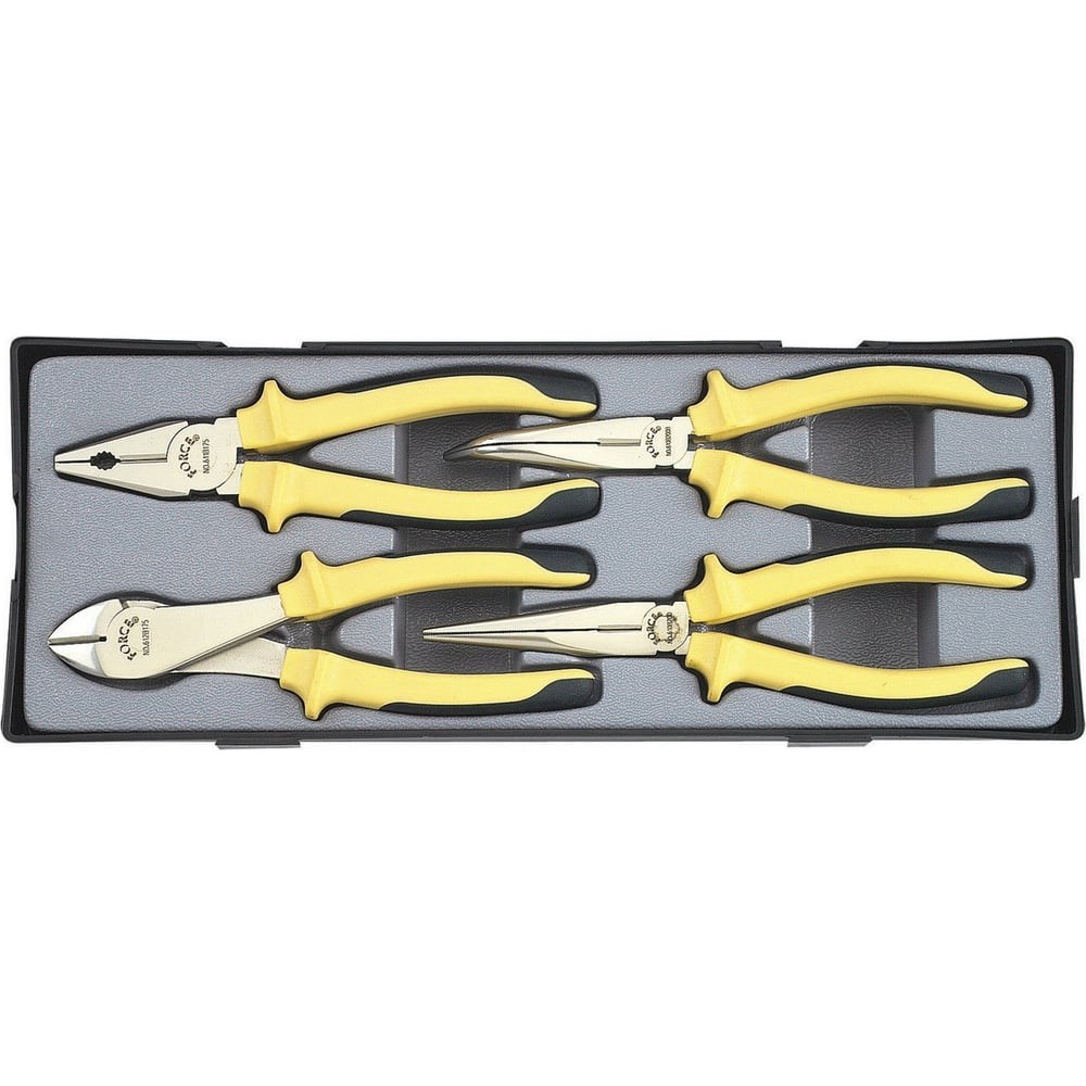 Набор шарнирно-губцевого инструмента 4предмета FORCE T5046 позволяет работать с металлом и различными деталями любых размеров. Наличие нескользящих рукояток обеспечивает надежный хват и работу с большим усилием.