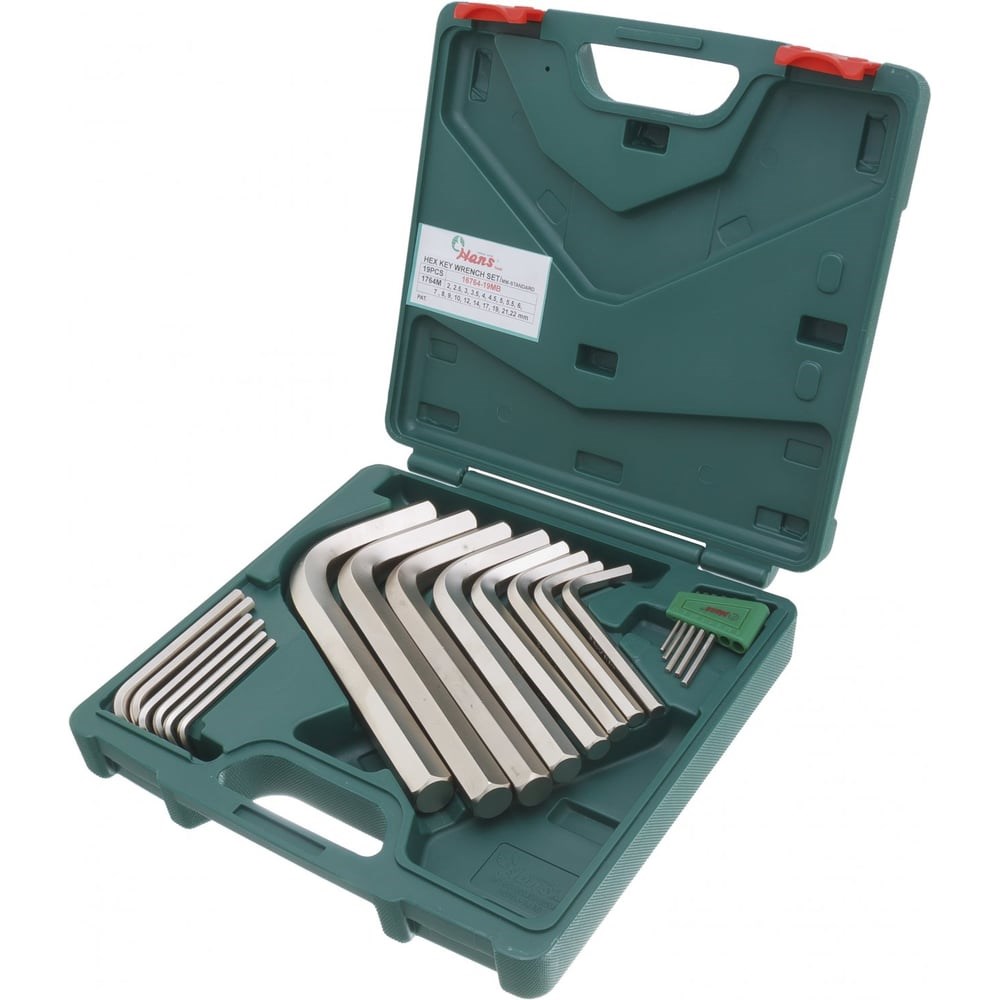 Набор Г-образных шестигранников Hans 19шт. 16764-19MB незаменим при монтаже и демонтаже резьбового крепежа, имеющего внутренний шестигранный профиль. Благодаря материалу изготовления - хромованадиевой стали - инструменты устойчивы к деформации, что увеличивает их эксплуатационный ресурс. Для удобства хранения и транспортировки набор поставляется в пластиковом кейсе.