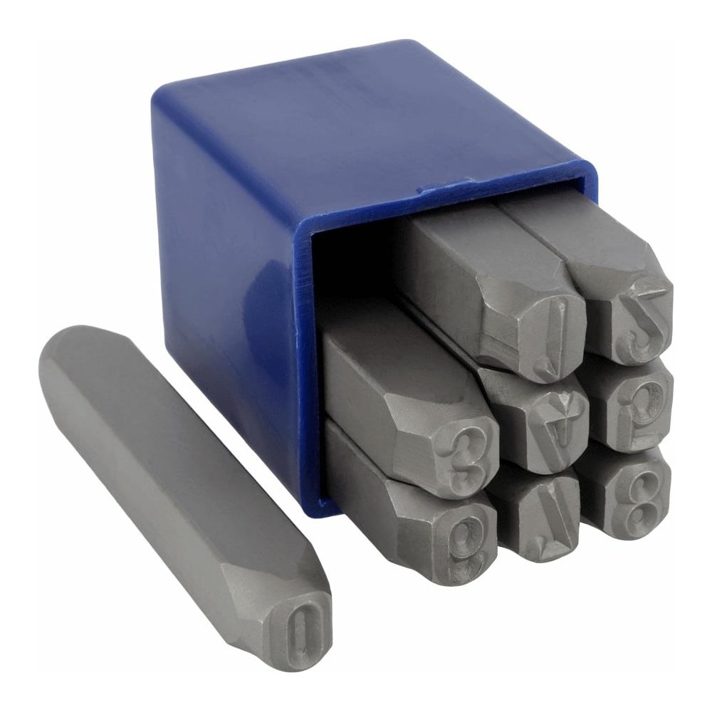 Набор стальных цифровых клейм BERIL 551008 8 мм 12347 предназначен для нанесения цифровой маркировки на пластичные материалы. Клейма изготовлены методом фрезерования из хромованадиевой инструментальной стали и закалены до твёрдости 58-62 HRC, благодаря чему отличаются прочностью и долговечностью. Изделия защищены от коррозии методом фосфатирования. Набор состоит из девяти цифровых клейм от 0 до 9. Клейма поставляются в пластиковом футляре для удобства хранения.