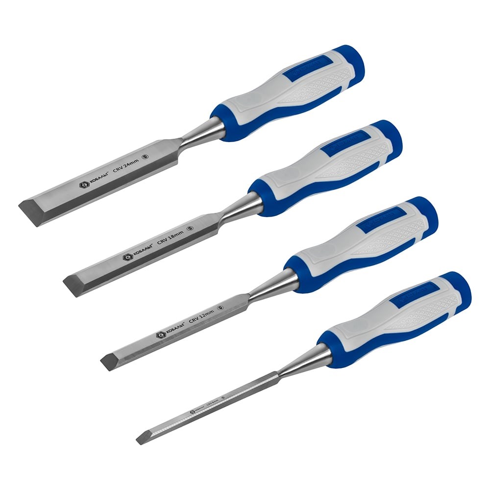 Набор плоских стамесок: 6, 12, 18, 24мм, длина 140мм, CR-V, двухкомпонентные рукоятки, 4шт КОБАЛЬТ 245-671 разработан для точной и качественной обработки заготовок из мягких материалов (древесины, пластика и пр.). В комплекте представлены инструменты самых распространенных размеров. Наличие двухкомпонентных рукояток обеспечивает уверенное удержание без риска проскальзывания в ладони пользователя.