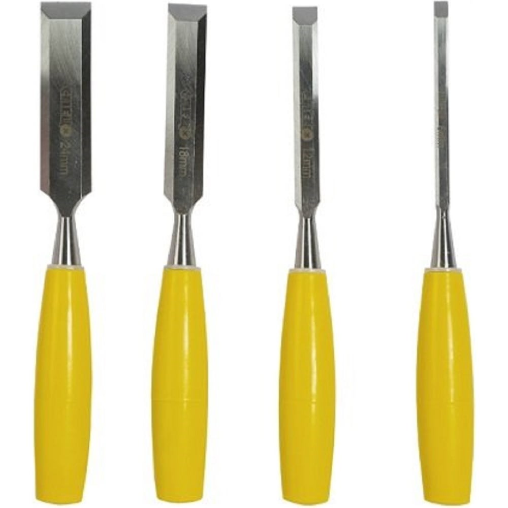 Набор стамесок СПЕЦ НС-4П, пласт. рукоять, 4 шт, сталь HCS,пласт пакет СПЕЦ-3383 предназначен для проведения различных столярных работ, включая первичную обработку, выборку пазов и очистку углублений деревянных конструкций. Подходит для бытовых и профессиональных работ. Набор включает в себя прямые стамески с заостренным лезвием длиной 100 мм. Материал рабочей части — высокоуглеродистая сталь, которая прошла дополнительную термическую обработку с последующим отпуском для снятия внутренних напряжений. В комплект входят четыре стамески шириной 6, 12, 16 и 24 мм, упакованные в прозрачную полиэтиленовую пленку.