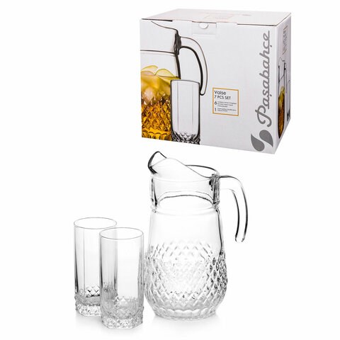 Набор столовый 7 предметов, кувшин 1250 мл + 6 стаканов 275 мл, стекло, PASABAHCE "ВАЛЬС", фирменная подарочная упаковка, 97675