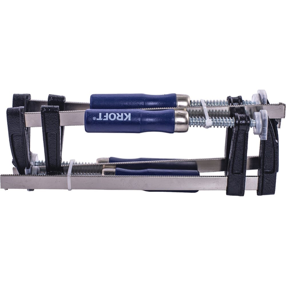 Набор струбцин f-обр. 50х150 мм 4 шт. KROFT Применяется для зажатия и фиксации различных заготовок и деталей при склеивании и других слесарных работах. Зажимное устройство с трапециевидной износостойкой резьбой подвижной части крепко фиксирует детали и легко регулируется. Направляющая шина из качественной инструментальной стали с кованными чугунными губками, ручка из лакированной древесины. Характеристики:Вид струбцины: F-образнаяВысота зажима (мм): 200Глубина зажима (мм): 50Материал рамы: стальМатериал рукоятки: древесинаКоличество в упаковке (шт): 4Применение: по дереву, металлу, пластикуНазначение: для зажатия и фиксации различных заготовок и деталей при склеивании и других слесарных работах