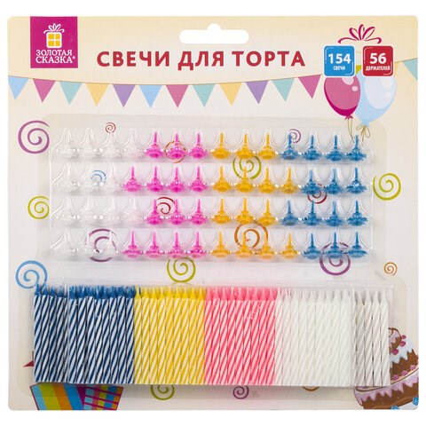 Набор свечей для торта 154 шт., 5,7 см, 56 держателей, ЗОЛОТАЯ СКАЗКА, в блистере, 591448