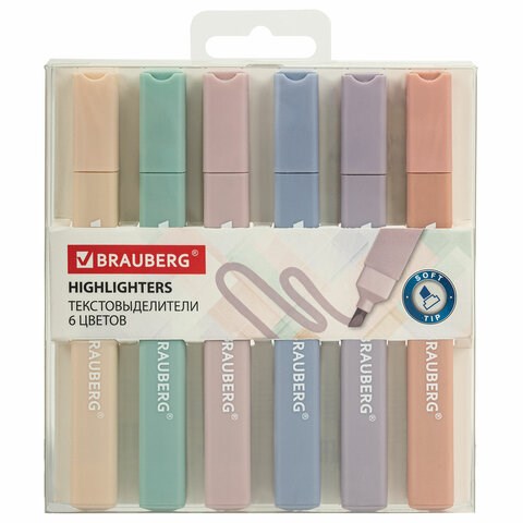 Набор текстовыделителей 6 ЦВЕТОВ МОРАНДИ, BRAUBERG "Morandi", линия 1-5 мм, 152516