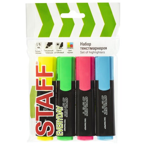 Набор текстовыделителей STAFF "EVERYDAY" HL-116, 4 шт., АССОРТИ, линия 1-5 мм, 150116