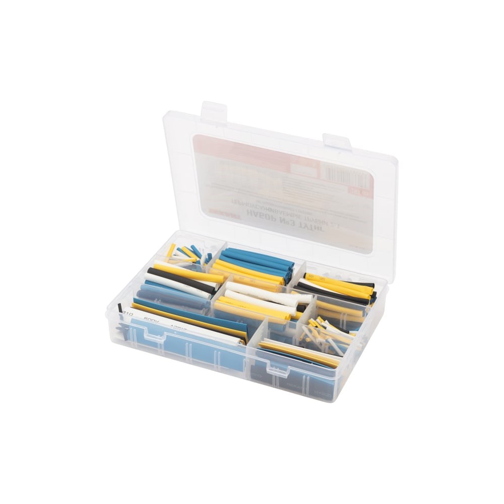 Набор термоусадочных трубок REXANT №3 ТУТнг 4 цвета, 288 шт. 29-0133 используют для создания и восстановления поврежденной изоляции, герметизации поверхностей электрических соединений, бандажирования, маркировки кабелей и проводов, для создания антикоррозийного защитного покрытия. Термоусаживаемые трубки изготовлены из высокотехнологичного материала – полиолефина. Могут использоваться при создании и восстановлении изоляции, маркировки и в качестве декоративного материала. Дополнительные технические характеристики: Состав: радиационно-сшитый полиолефин. Горючесть: не поддерживает горение. Относительное удлинение при разрыве: не менее 200%. Температура усадки минимальная: 110 °С. Температурный диапазон в режиме эксплуатации: -40...+125 °С. Прочность на растяжение: не менее 10.4 МПа. Электрическая прочность: не менее 19.7 кВ/мм. Рабочее напряжение: 600 В. Удельное электрическое сопротивление: 1014 Ом/см.