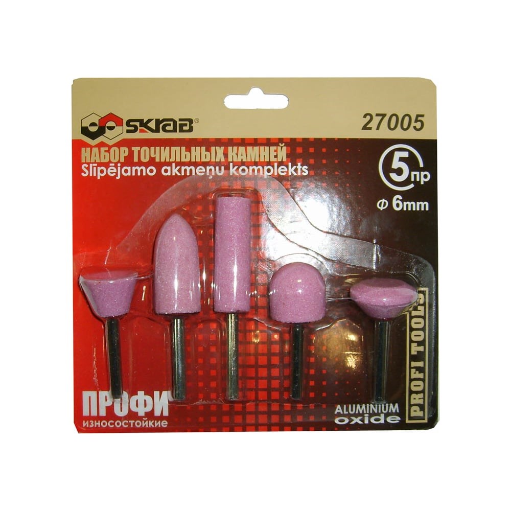 Набор точильных камней SKRAB ПРОФИ 5пр. 6мм А11/A21/A32/A37/W197 Al2O3 27005 предназначен для шлифования деревянных, пластиковых, стеклянных и других заготовок. Подходит для затачивания режущих поверхностей на токарных инструментах и алмазных дисках. За счет компактных размеров набор не занимает много места на рабочем столе.