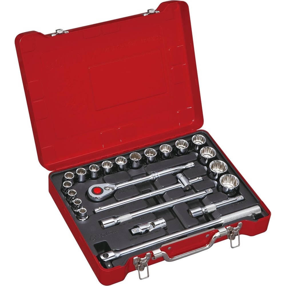 Набор торцевых головок и аксессуаров, 23шт BOVIDIX 380102403 широко используется и в частных гаражных мастерских, и в профессиональных сервисных центрах для ремонта и обслуживания автотранспортных средств. Все компоненты выполнены их прочного и качественного сплава хром-ванадиевой стали.