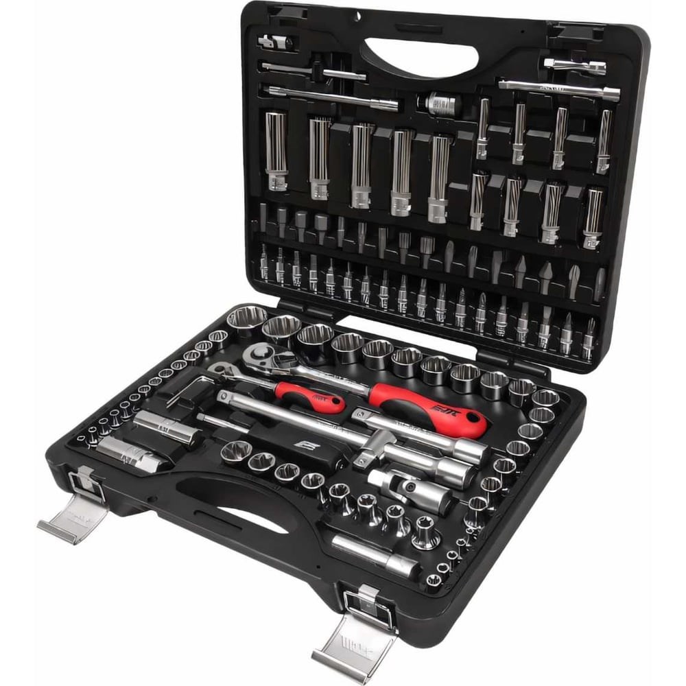 Набор торцевых головок и вставок (1/4&1/2, 12-гранные, в кейсе, 110 предметов) JTC T110B-B72 используется в процессе технического обслуживания и ремонта автотранспорта. Большое количество видов и размеров оснастки делает набор универсальным и расширяет его сферу применения. Трещотки оснащаются рукоятями из резины, которые не скользят в руках при работе.