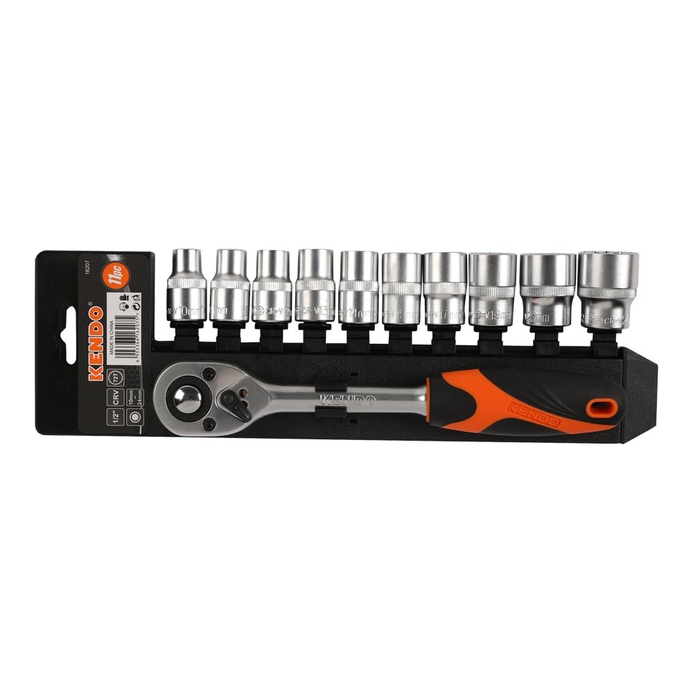 Набор торцевых головок с трещоткой KENDO 16207 11 предметов подойдет для монтажа и демонтажа резьбовых соединений. Трещотка с двухкомпонентной рукояткой из TPR, что делает инструмент удобным в работе. Вращающаяся головка оснащена переключателем для смены направления закручивания.