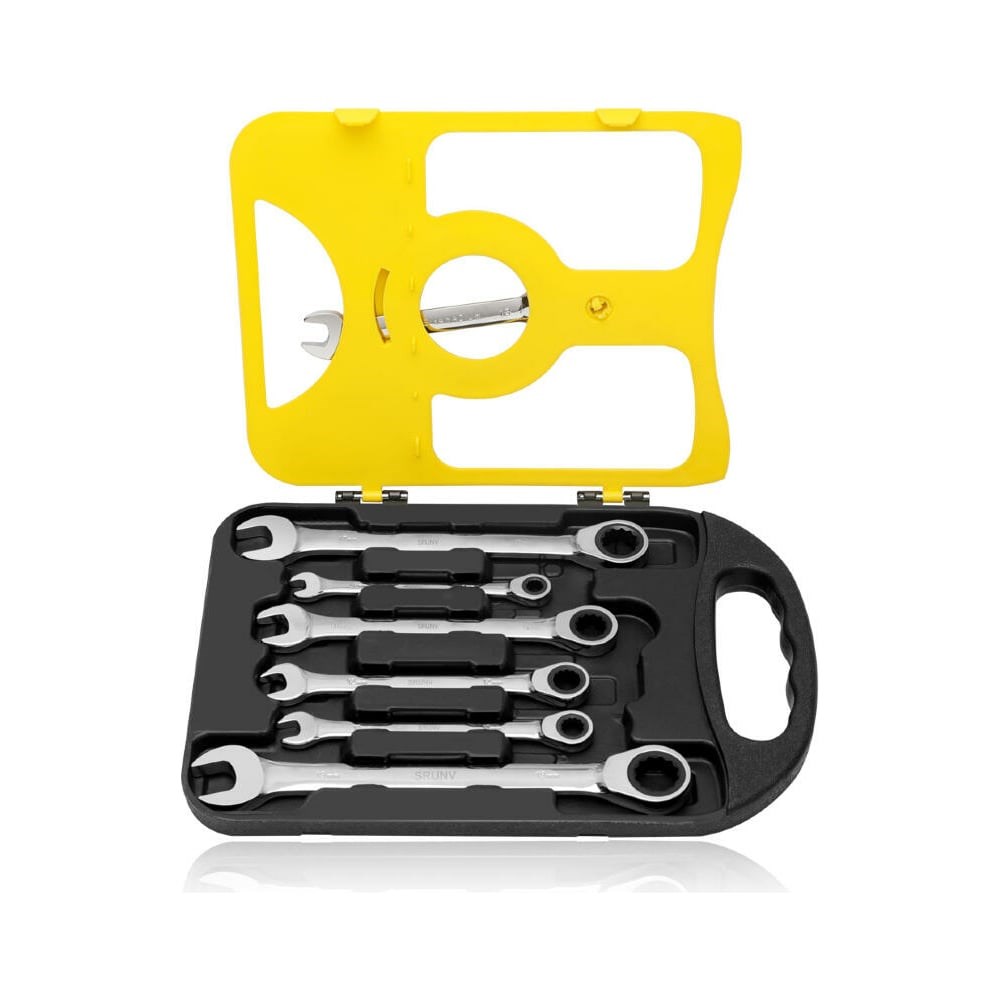Набор комбинированных трещоточных ключей с 72 зубцами изготовлен из хромованадиевой стали, что обеспечивает надежность и долговечность. Профиль накидной части ключа имеет 12 граней, что увеличивает площадь соприкосновения рабочих поверхностей и снижает риск деформации граней крепежа при монтаже. Данный набор идеально подходит для откручивания и закручивания труднодоступных болтовых соединений. Благодаря трещоточному механизму, который позволяет поворачивать ключ без необходимости снимать его с гайки или болта, монтаж становится быстрее и удобнее. Набор состоит из нескольких ключей разных размеров, что позволяет выбрать подходящий инструмент для конкретного крепежа. Каждый ключ имеет два рабочих конца: один со шлицами для винтов с квадратной головкой, а второй - с прямыми гранями для гаек и болтов. Набор трещоточных ключей - незаменимый инструмент для профессиональных монтажников и любителей, занимающихся ремонтами и обслуживанием техники в домашних условиях. Он идеально подойдет для работы с автомобилями, мотоциклами, велосипедами, бытовой техникой и другими объектами, требующими надежного крепежа.