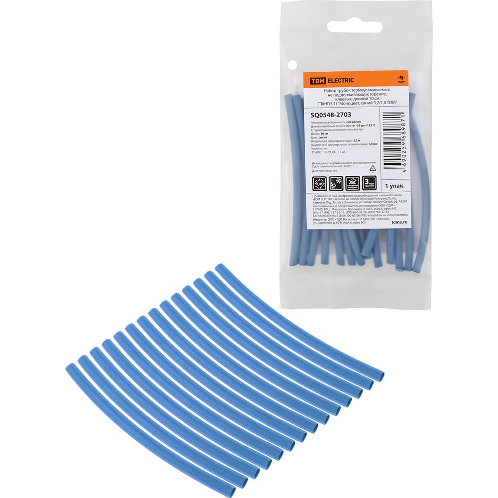 Набор термоусаживаемых клеевых трубок TDM ELECTRIC "моноцвет, синий 3,2/1,0 " SQ0548-2703