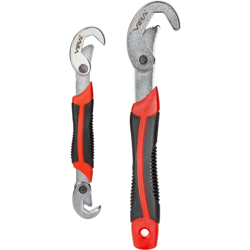 Набор ключей универсальных с крюком 9-32 ммКлючи универсальные самозажимные предназначены для работы с любыми поперечными сечениями. Односторонний ключ из высокоуглеродистой стали с пластиковой рукояткой. У ключа большой подвижный крюк 23-32 мм. Двусторонний ключ с адаптацией под размер от 9 до 22 мм с однонаправленным ходом.Инструменты предназначены для закручивания болтов и гаек с 4, 6, 12 гранями. Подойдут для захвата труб и прутьев с круглым, квадратным и треугольным сечением. Являются альтернативой наборам ключей в доме: один инструмент проще хранить, чем целый комплект, легко переносить с собой.В наборе два ключа:Двусторонний ключ из высокоуглеродистой стали с пластиковой рукояткой. С одной стороны находится малый подвижный крюк с рабочим ходом 9-13 мм; а с другой - большой подвижный крюк 13-22 мм.Односторонний ключ из высокоуглеродистой стали с пластиковой рукояткой. У ключа большой подвижный крюк 23-32 мм.Характеристики ключа №1:Тип ключа: двустороннийДлина инструмента (мм): 190Раскрытие зева (мм): 9-14 и 15-22Материал инструмента: углеродистая сталь CSТвердость инструмента (HRC): 42-46Рукоятка: ПВХ (PVC)Предельный крутящий момент (Н/м): 80 (для 9-14 мм) и 145 (для 15-22 мм)Назначение: для закручивания болтов и гаек с 4, 6, 12 гранями, для захвата труб и прутьев с круглым, квадратным и треугольным сечениемХарактеристики ключа №2:Тип ключа: одностороннийДлина инструмента (мм): 270Раскрытие зева (мм): 23-32Материал инструмента: углеродистая сталь CSТвердость инструмента (HRC): 42-46Рукоятка: ПВХ (PVC)Предельный крутящий момент (Н/м): 250Назначение: для закручивания болтов и гаек с 4, 6, 12 гранями, для захвата труб и прутьев с круглым, квадратным и треугольным сечением