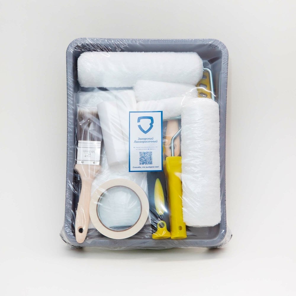 Малярный набор ЗАГОРСКИЙ ЛАКОКРАСОЧНЫЙ ЗАВОД 15 предметов ZLK06487 включает в себя все необходимое для полноценного окрашивания любой поверхности. Есть бюгели для сменных роликов и рулон скотча для разграничивания зон окрашивания. Размеры инструмента подойдут для любых объемов работ и стен различной сложности.
