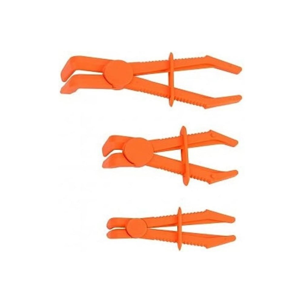 Набор зажимов шлангов, клещи Г-образные FORCE 3пр. 903G18 имеют специальный фиксатор, который удерживает клещи в одном положении. Это позволяет безопасно работать с патрубками из любых материалов. Губки сжимают шланги без перегибов, что исключает растяжение и ослабление изделия. Инструмент легко снять за счет особой формы рукоятей.