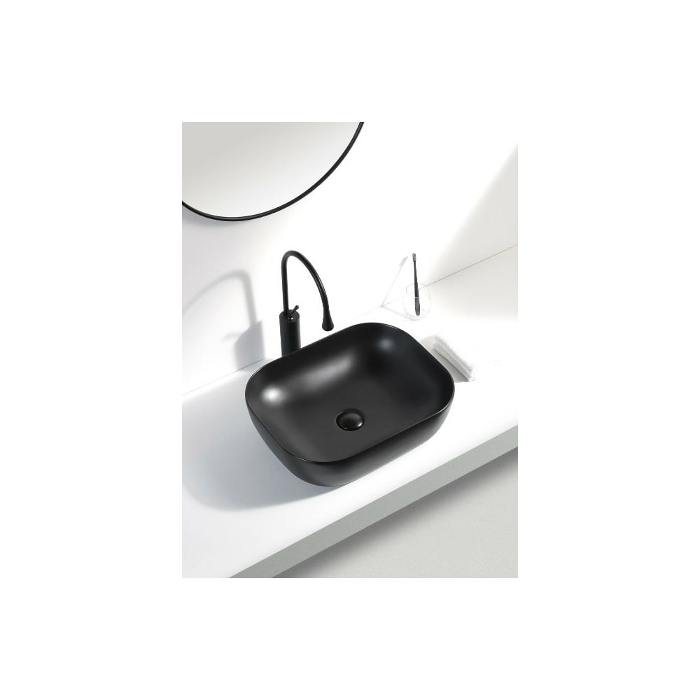 Керамическая накладная раковина Aquanet LAKE-1-MB 500х395х145, черный матовый 00245829 изготовлена из высококачественной керамики с узкими бортиками, выглядит очень изящно. Чаша покрыта грязеотталкивающей эмалью, благодаря чему чистка раковины и приведение ее в порядок становится значительно проще. Раковина имеет прямоугольную форму, что гарантируют удобство ее установки и использования, так как смеситель можно поставить с любой удобной стороны, поскольку отверстие под слив находится ровно посередине.
