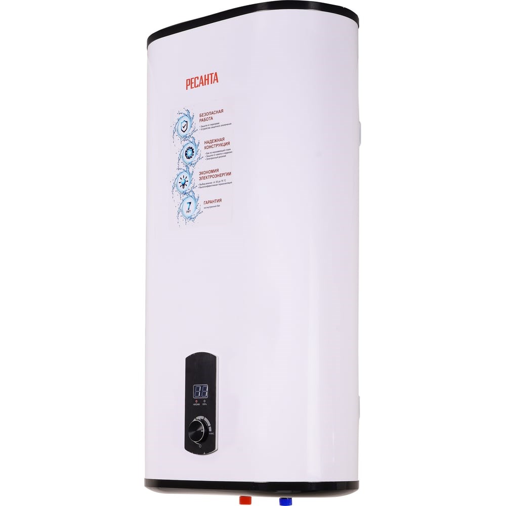 Накопительный водонагреватель Ресанта ВН-80В обеспечивает нагрев до 80 л холодной воды, этого объема хватит для семьи из 4 человек. Благодаря мощности ТЭНа в 2000 Вт она нагревается до максимальной температуры в 75°C за 98 мин. Бак бойлера выполнен из нержавеющей стали. Модель Ресанта ВН-80В оснащена блоком управления с электронным дисплеем. На нем в режиме текущего времени отображается температура воды. Индикаторы подключения к сети и нагрева информируют о работе электроприбора. Желательная температура воды задается с помощью ручки термостата. Защита от перегрева обесточивает ТЭН в случае, если температура воды достигнет 95°C. Бойлер монтируется в вертикальном положении над точками водопотребления. Подключение труб ХВС И ГВС расположено снизу. Размер резьбы соединительных патрубков ½ дюйма. В комплект поставки входят 4 анкерных болта для крепления водонагревателя к стене и предохранительный клапан. Он блокирует подачу воды в бак при превышении давления внутри.
