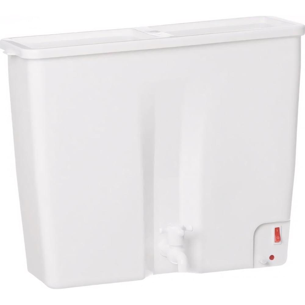 Наливной умывальник с подогревом воды ЭВБО-22 имеет вместительный бак, изготовленный из полипропилена - термостойкого, практичного и безопасного материала.Навесная модель от популярной торговой марки "Элбэт" весит всего 2,5 кг, её можно установить и на даче, и даже в гараже. Водонагреватель отличается компактными габаритами, имеет световую индикацию работы и максимально удобную ручную регулировки температуры. Для эксплуатации такой климатической техники достаточно наполнить бак холодной водой, не имея подключения к водопроводу. Модель обладает ручной регулировкой температуры, индикатором включения и автоматическим отключением по достижении установленной температуры нагрева воды.Технические характеристики умывальника:Объем бака – 22 л.Габариты водонагревателя (ВхШхГ) 38х47х16 см.Материал бака – пластик.С нагревателем - ТЭН нагревает воду до 50°C за 35 мин.Ручная регулировка температуры.Мощность - 1250 Вт.Длина провода 70 см.Цвет – белый.Вес товара – 2,5 кг.Расстояния между отверстиями креплений – 22,5 см.На крышке бака 2 вентиляционных отверстия для предотвращения скапливания пара.Повесить умывальник можно с помощью крепежей, которые идут в комплекте.Габариты упаковки: 41х49х17 см.Максимальный нагрев воды: 65°С.Индикатор включения.Удобный умывальник для загородных домов или дачных участков. Классический белый цвет подойдет к любому интерьеру. Компактный и легкий. Простая сборка.