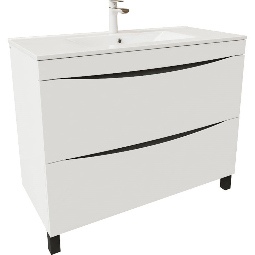 Напольная тумба с умывальником IDDIS Cloud 100 см, белая CLO10WFi95K Долгожданное пополнение одной из самых популярных коллекций мебели IDDIS® – вместительная тумба Cloud с плоским умывальником. Сочетание строгих геометрических форм умывальника с плавными линиями интегрированных ручек делает дизайн мебели Cloud современным и востребованным. Контрастные ножки выгодно подчеркивают белоснежный фрезерованный фасад изделия. Напольная тумба Cloud – невероятно удобное решение для тех, кому нужна модель с увеличенной вместительностью для хранения габаритных предметов: больших пакетов со стиральным порошком, емкостей с бытовой химией и др. Входящий в комплект умывальник (арт. 0131000i28) из качественного фарфора отличается высокой прочностью и простотой в уходе – он не задерживает загрязнения и неприятные запахи, надолго сохраняя первозданную белизну. Два выдвижных ящика закрываются плавно и бесшумно благодаря высококачественным скрытым направляющим с доводчиками немецкого производства. Фурнитура мебели IDDIS® рассчитана на 30 тысяч открываний, что составляет более 10 лет исправной работы. Гарантия на мебель IDDIS® – 3 года.