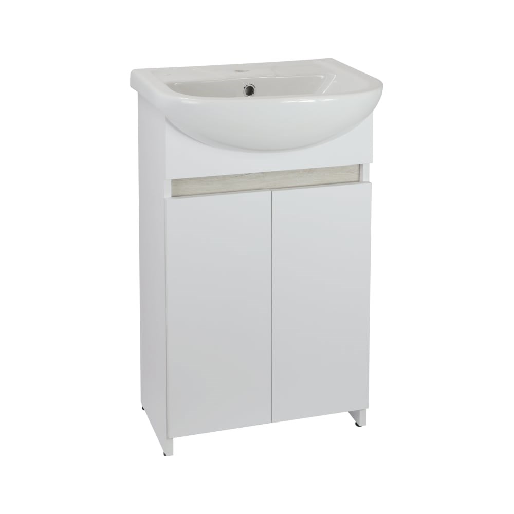 Напольная тумба Doratiz Бора-бора светлый дуб, белый, под умывальник Браво 50 Doratiz 9912.014 - современная и экологичная модель, которая украсит ванную комнату. Несмотря на весьма компактные размеры, тумба достаточно вместительна, позволит обустроить ванную комнату без значительных затрат, но при этом сохраняется удобство и практичность в использовании. Корпус и фасады из влагостойкого ЛДСП. Для комплектации тумбы идеально подойдет умывальник Браво 50.