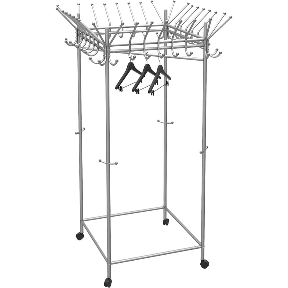 Напольная вешалка Мебелик Пико 23 на колесах металлик П0001416 918 подходит для небольших офисов.Благодаря наличию колес отличается мобильностью, поэтому легко передвигается.За счет устойчивой конструкции не упадет даже при максимальной нагрузке.Вешалка легко и быстро собирается, что экономит время и силы.Общественная вешалка - мобильный гардероб. Идеально подходит для небольших офисов. Гардероб рассчитан на 36 посетителей с размещением одежды, головных уборов, сумок, зонтов Возможно использовать вешалки-плечики. Идеально размещается в углу помещения и не занимает места, возможно использовать номерки Конструкция обеспечивает устойчивость при максимальной нагрузке на 40 персон Вешалка легко собирается без помощника, компактно упакованаМАТЕРИАЛЫ: стальная труба d25 мм., колес. опоры УПАКОВКА: 99*21*13 см, 1 место ВЕС: 20 кг вешалка на 40 персон
