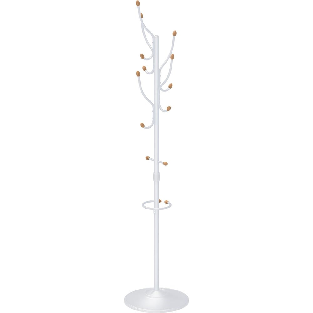 Напольная вешалка обладает оригинальной формой с декором из дерева. Круглое основание обеспечивает дополнительную устойчивость изделия. Для комфортного использования предусмотрен дополнительный кронштейн для сумок и зонтов.