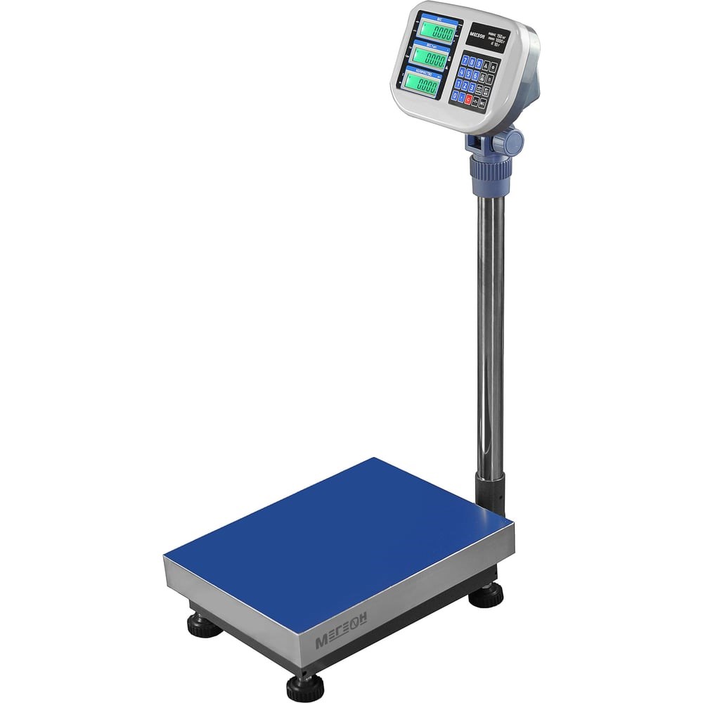 Напольные весы МЕГЕОН 50315W к0000027762 - новинка в модельном ряду напольных весов с электронно-цифровым управлением. Диапазон измерения представленной модели позволяет проводить взвешивание продукции от 10 грамм до 150 килограмм. Функциональные способности выгодно отличаются от большинства подобных товаров, имеющихся в продаже. К преимуществам можно отнести: подсчёт количества объектов на грузовой платформе, их суммирование и количественный учёт. Также имеются функции весового контроля, расчёт среднего веса и возможность предварительной установки массы. Приятным дополнением является наличие сервисных настроек и калибровки, не требующей специальных навыков. Все значения отображаются на трёх ЖК- дисплеях с яркими светодиодными подсветками каждого экрана. Автономность работы обеспечивает встроенная аккумуляторная батарея напряжением 6 В и ёмкостью 4,5 Ач. Изделие по достоинству оценят работники предприятий общественного питания, торговых организаций, почты, различных видов производства, сельского хозяйства и других отраслей.