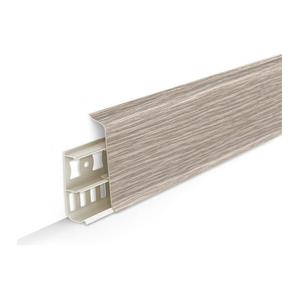 Напольный плинтус DECONIKA (70 мм; 2,2 м; 229 дуб латте; 1 шт.) Д-П70 229 ДУБ ЛАТ - современный продукт, безупречно сочетающийся с любыми современными отделочными материалами. Строгие классические формы и благородный глянец гармонично подчеркнут декор как в домашнем интерьере, так и в современном офисе. Все профили коллекции с лёгкостью собираются в единую систему благодаря единой эстетике и стандартности размеров. Состоит из двух частей – задний монтажный профиль и цельная лицевая часть. Легкосъемность цельной лицевой части является отличительной чертой новой коллекции. Продуманная форма и перфорация основы профиля существенно облегчают её монтаж.
