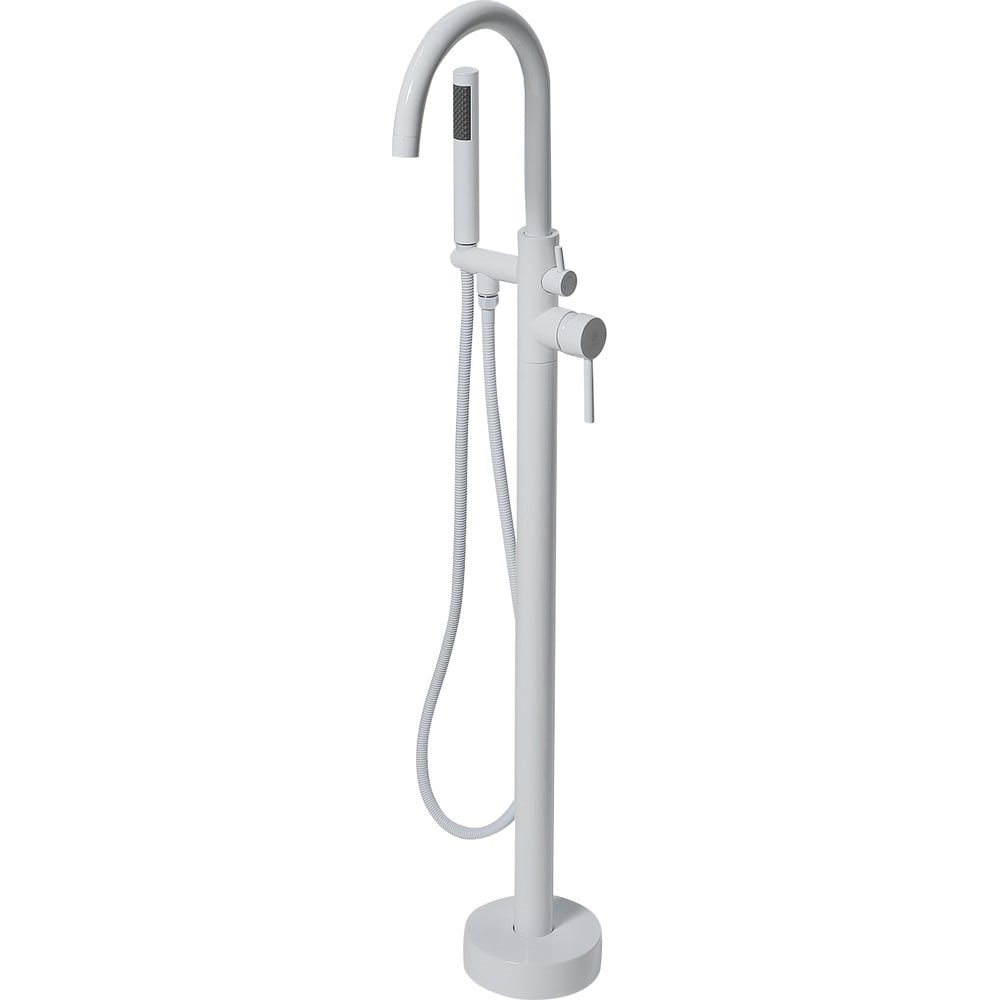 Напольный смеситель для ванны Orange Steel белый M99-336w будет особенно актуален в новостройках, где часто вывод воды предусмотрен именно из пола. Смеситель выполнен в минималистичном стиле и имеет простой изогнутый излив крана, боковой однозахватный рычаг управления, шланг 150 см с защитой от перекручивания (в металлической оплетке) и ручной душ (1 режим). Основа конструкции выполнена из латунного сплава - отлично зарекомендовавшего себя материала; за переключение потоков воды отвечает керамический дивертор. Цвет глянцевый белый.