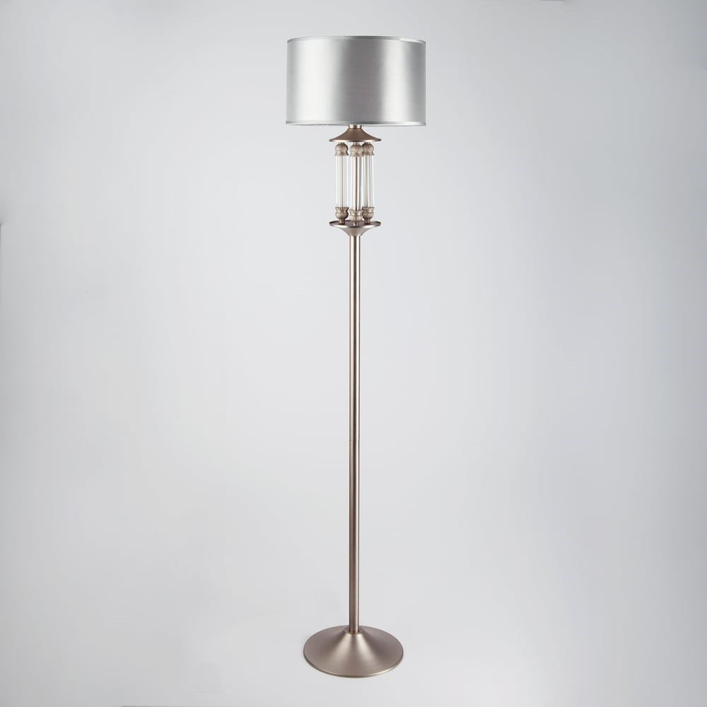 Напольный светильник Eurosvet 01046 1 сатин никель 00000084224 - это стильный элемент светового дизайна в современных и классических интерьерах. Эффектный торшер со сменной лампой E14 поможет создать качественное дополнительное освещение на площади 3 м² и станет роскошным украшением вашей спальни или гостиной. Благодаря серому тканевому абажуру напольный светильник создает мягкое равномерное свечение. Прочный корпус светильника, выполненный из стекла и металла, устойчив к механическим воздействиям, а защитное покрытие обеспечивает надежную электроизоляцию и презентабельный внешний вид.
