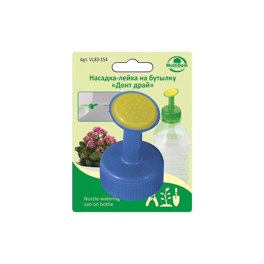 Насадка-лейка на бутылку МУЛЬТИДОМ Донт драй VL83-154 - удобное приспособление для полива комнатных растений и рассады. Любая пластиковая бутылка может превратиться в полезный аксессуар. Насадка с функцией рассеивания создает эффект дождя и позволяет равномерно оросить листья и землю. Насадка-лейка навинчивается на горлышко бутылок стандартных размеров. Внимание! Поставляется в нескольких цветах: зеленый, синий, красный. Возможности выбора нет.