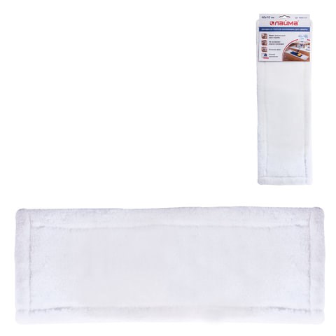 Моп имеет форму плоского прямоугольника, такая форма и чистящая поверхность из ворса длиной 0,8 см позволяет удобно собрать грязь по углам и захватить большую площадь убираемой поверхности, что в свою очередь уменьшает временные затраты на уборку больших площадей. Устойчива к износу, что обеспечивает долгий срок службы уборочного инструмента. Выполнена из микрофибры, имеет размер 40х10 см. Максимальный объем впитывания – 150 мл. Используется в комплекте со шваброй, крепится к держателю с помощью карманов.