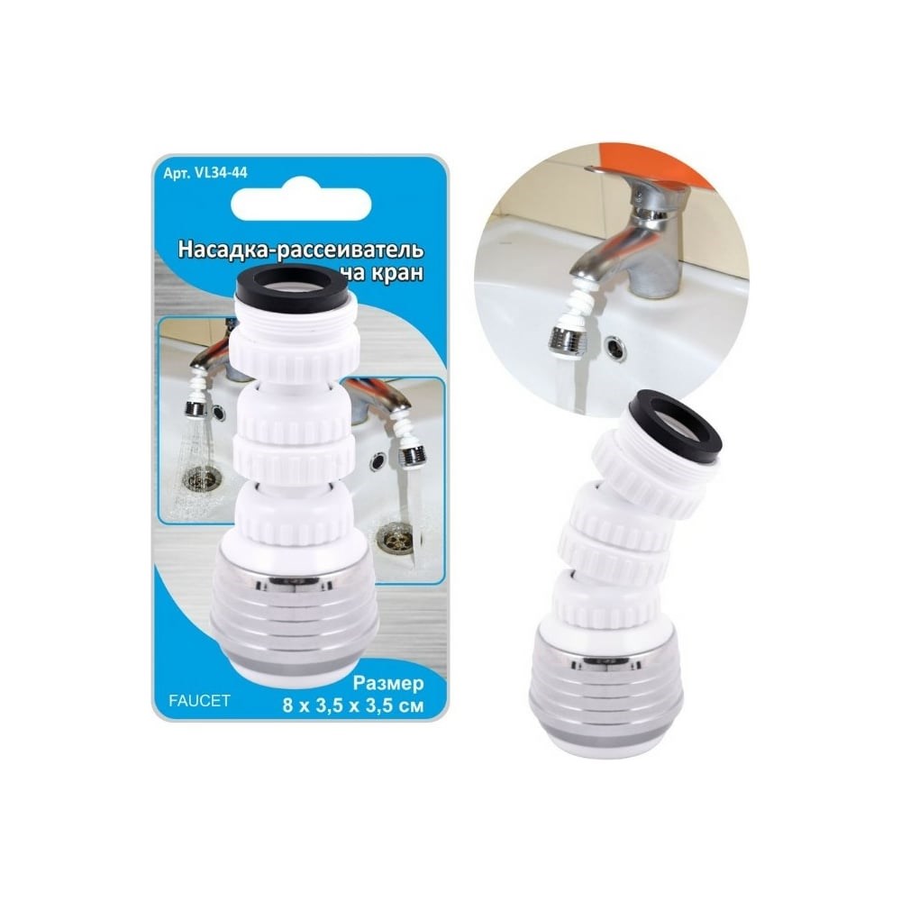 Насадка-рассеиватель на кран МУЛЬТИДОМ 8x3,5x3,5 см VL34-44 уменьшает поток и увеличивает напор, расход воды уменьшается до 70%. Предусмотрено два режима подачи воды: направленной концентрированной струей или рассеивающим потоком. Подвижная конструкция дает возможность направить поток в нужном направлении. Уплотнитель в комплекте предназначен для герметичной установки и избежать протечки воды. Подходит для большинства стандартных кранов с наружной и внутренней резьбой 22 мм.