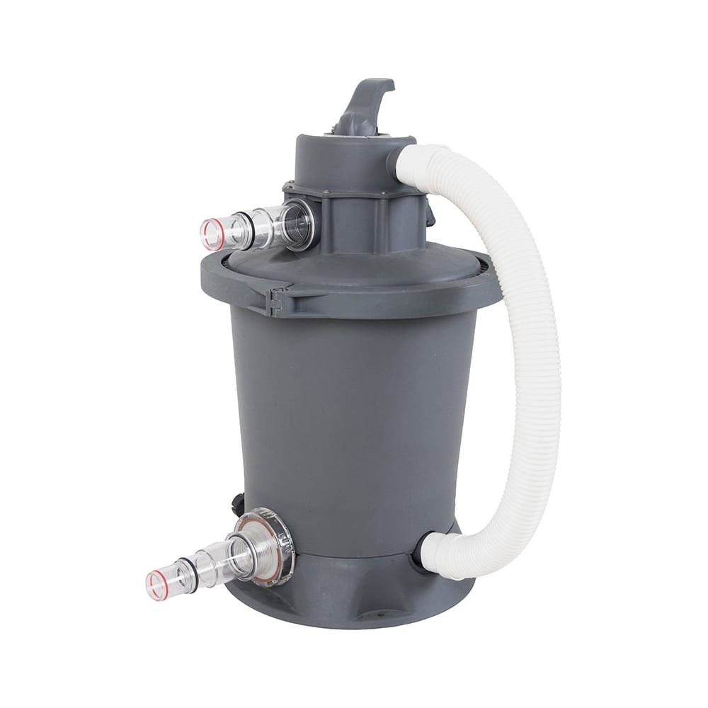 1 фильтр-насос, 2 шланга, 6 зажимов, 2 сетчатых фильтра. Фильтр-насос 220-240 В, 50 Гц, 90 Вт. Класс защиты от поражения электрическим током I. расход воды: 1000 галлонов/ч - 3750 л/ч Материал: полипропилен Степень защиты от воды IPX7. Максимальная температура жидкости 35 °С.