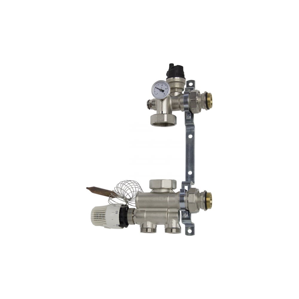 Монтажная длина насоса - 130 мм. Пределы настройки температуры термостатического клапана с термоголовкой - 20-50 ˚С. Максимальная пропускная способность (Kvs) термостатического клапана (поз.10) - 4,5 м3/час. Настроечные пределы предохранительного термостата - 20-90 ˚С. Класс защиты предохранительного термостата - IP40. Максимальная температура воздуха, окружающего узел - 50 ˚С. Минимальное давление перед насосом - 0,1 бар.