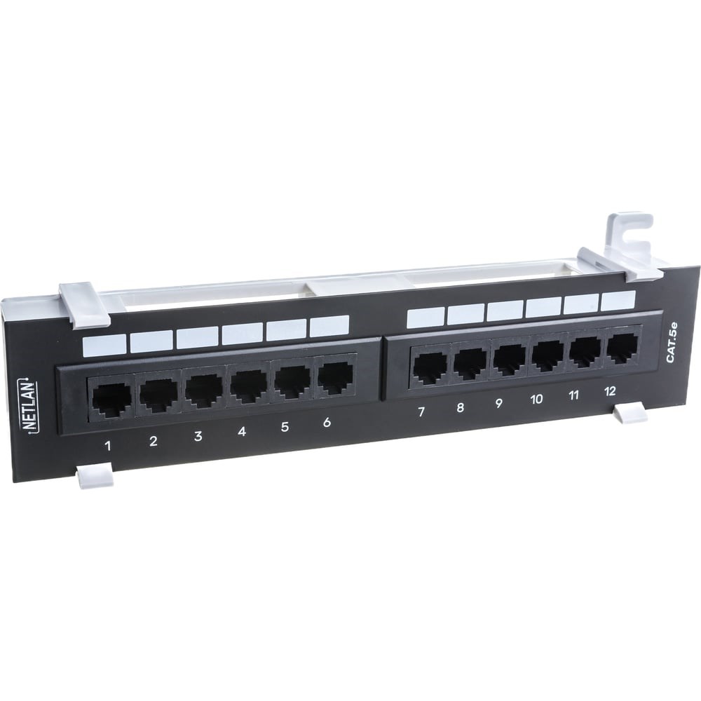 Настенная панель NETLAN 12 портов, категория 5e, RJ45/8P8C, неэкранированный, черная EC-UWP-12-UD2