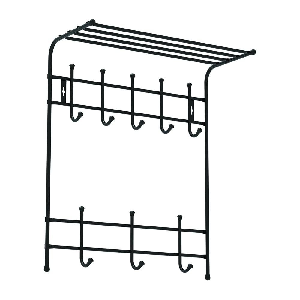 Настенная вешалка с полкой Nika 8 крючков, черная ВПТ8ч предназначена для прихожей. Изготовлена из устойчивого к механическим воздействиям и коррозии материала. Оснащена специальной полкой для головных уборов.