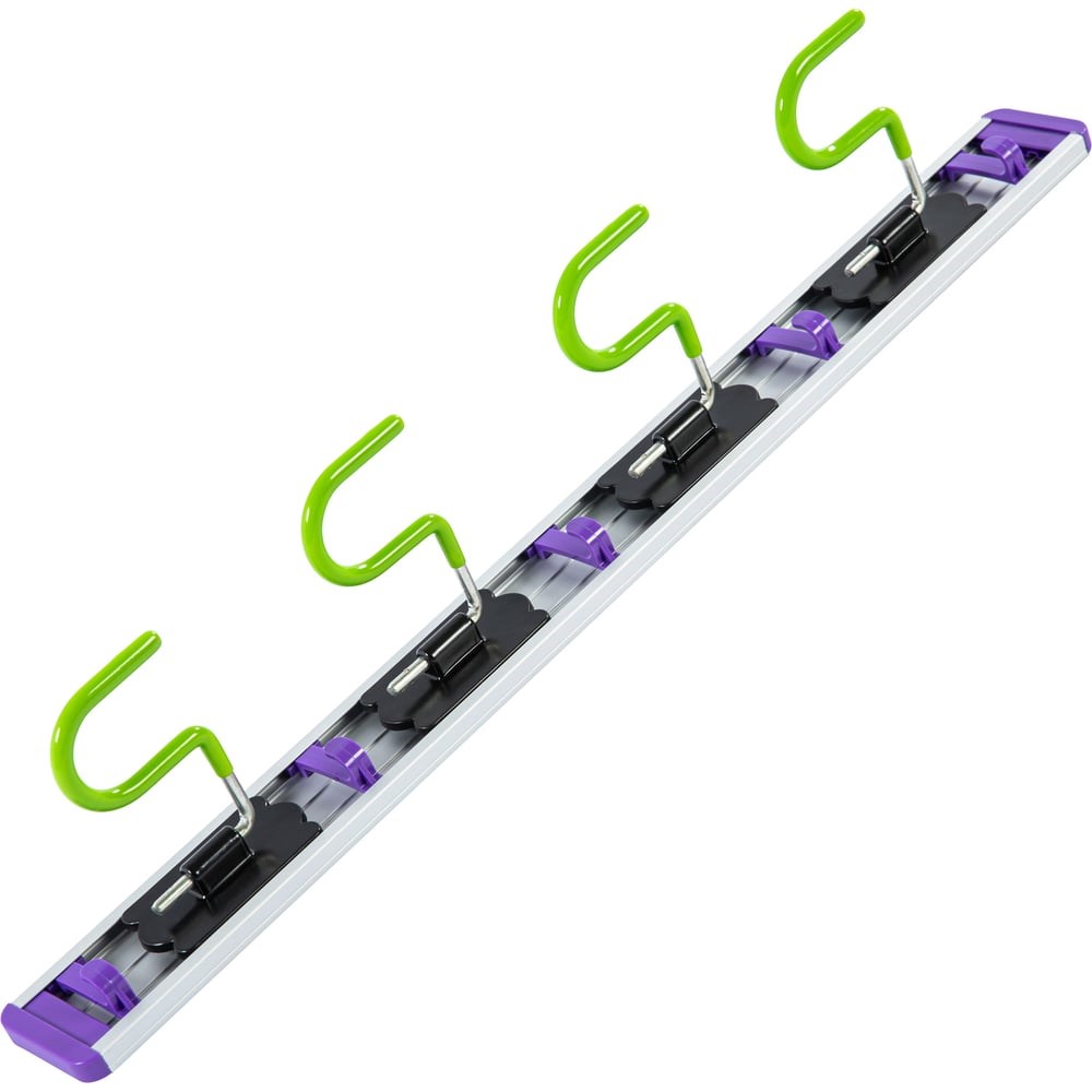 Алюминиевый настенный держатель Palisad 68304 с 4 основными и 5 дополнительными крюками позволяет организовать подвесное хранение садовых инструментов и освободить рабочее пространство. Инструменты на держателе не будут мешать, не потеряются и не сломаются. На нем можно разместить инвентарь не только с обычным черенком, но и с отверстием для подвесного хранения: швабры, веревки и т. д. Приспособление пригодится дома и на даче.
