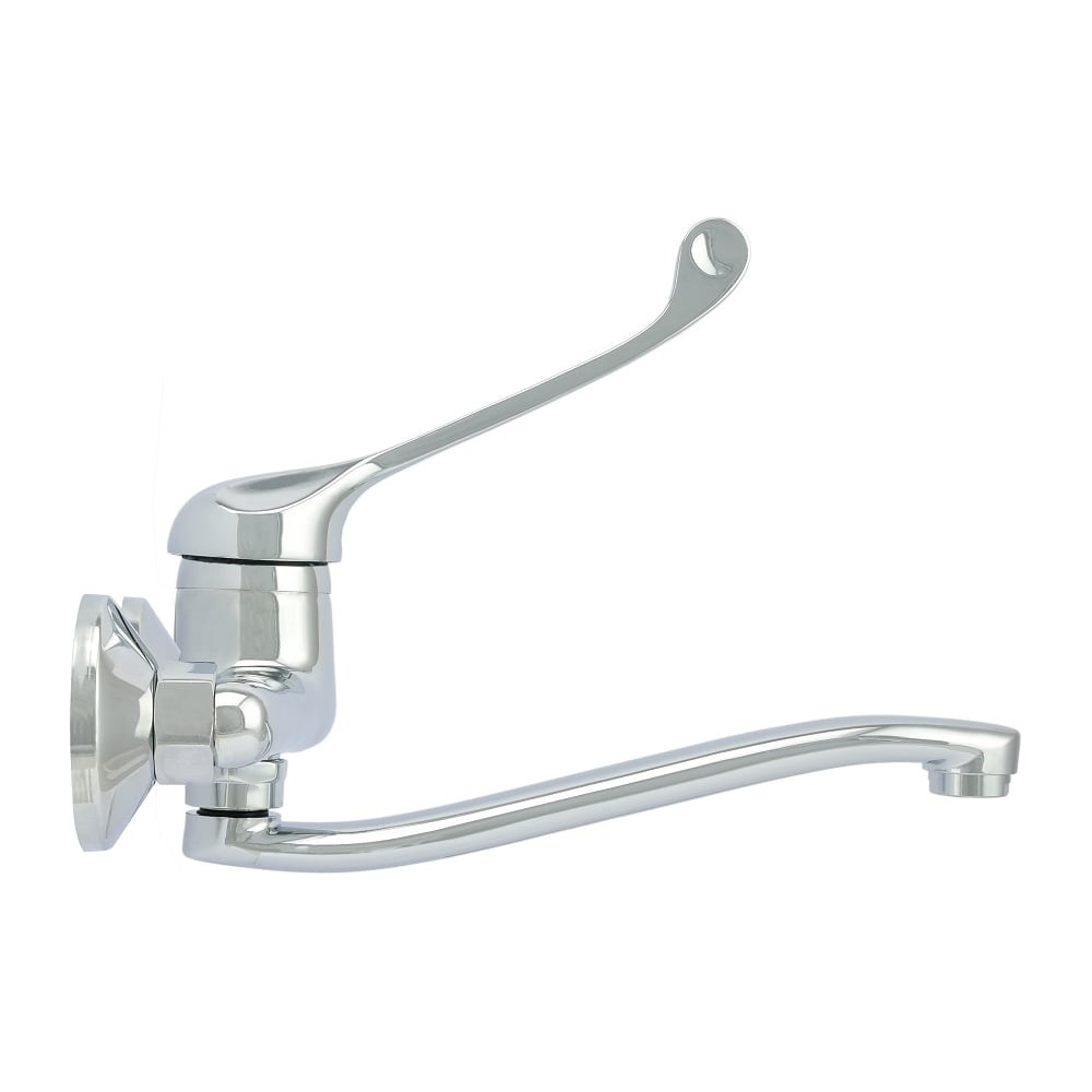 Смеситель для кухни ISTOK life рычажный серии Standard, 0402.976. Уникальный смеситель (кран) предназначен для использования как в городских квартирах и частных домах, так и в местах, где необходимо открыть воду без использования рук, например: медицинские учреждения, объекты общественного питания и другие. Имеет современный дизайн и изготовлен из материалов и комплектующих, отвечающих современным стандартам качества. Данная модель представляет собой надежный и современный смеситель с вертикальным способом установки, устанавливается на стену или панель. Тип крепления – жесткий. Смеситель имеет поворотный излив (гусак), длина которого 152 мм, расстояние от стены до аэратора примерно 200 мм, эко-сеточка аэратора выполнена из долговечного ABS-пластика, насыщает воду кислородом, и позволяет уменьшить ее расход. Стильный, современный корпус смесителя выполнен из прочного сплава алюминия с кремнием с хромированным покрытием. Открывать и регулировать температуру воды и выбирать оптимальный напор струи удобно посредством удлиненной (хирургической) ручки - рычага. Запорный механизм смесителя - керамический картридж 40 мм в корпусе из экологичного АВС-пластика, который не выделяет вредных веществ под воздействием высоких температур. Все элементы конструкции смесителя устойчивы к коррозии, износу и механическим повреждениям, что продлевает период использования изделия. Хромированное гипоаллергенное покрытие не раздражает кожу.