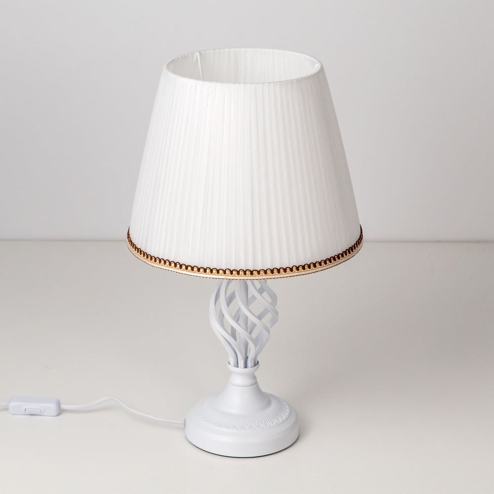 Настольный светильник Citilux Вена CL402800 с белым абажуром из органзы. Основание модели металлическое, цвет белый матовый. Модель рассчитана на использование ламп с цоколем Е27 и максимальной мощностью для ламп накаливания 75Вт. Светодиодные лампы можно использовать большей яркости. Сетевой провод длиной 1,8 метра с выключателем, который находится на расстоянии 20 см от основания настольной лампы. Модель прекрасно подойдет для освещения стола и прикроватной тумбочки.