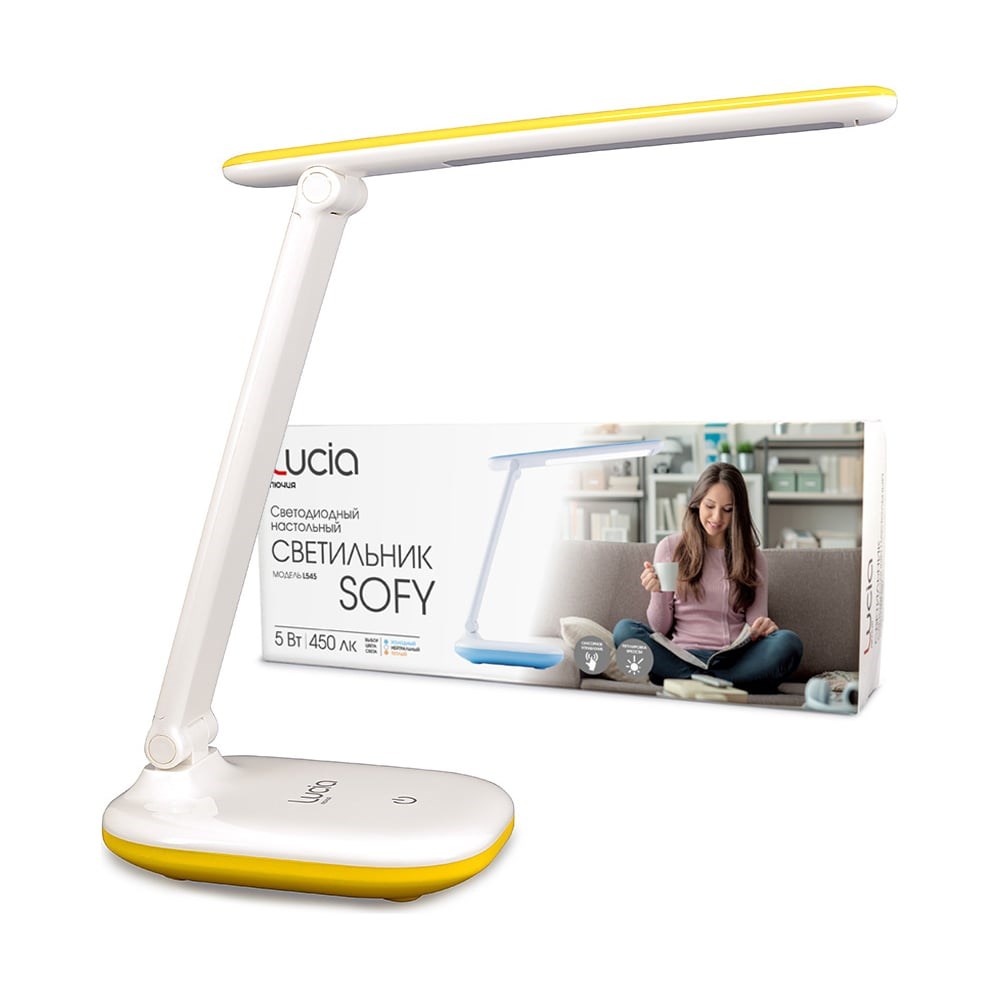 Настольный светильник Лючия L545 Sofy 5W 2900-5500K желтый 4606400030997 станет незаменимым элементом вашего рабочего стола. Современный дизайн выполнен в стиле Хай-Тек, данный осветительный прибор по праву можно назвать инновационным решением для освещения рабочего пространства. Светильник имеет сенсорное управление. Встроенный литий-ионный аккумулятор делает светильник легким и позволяет использовать его автономно, без подключения к электросети. Вы можете выбрать один из 3-х режимов освещения и настроить свет от мягкого расслабляющего теплого света до холодного, настраивающего на рабочий лад. При выключении светильник запомнит последний режим. Также вы можете настроить яркость света (3 положения). Светильник безопасен для глаз у него отсутствует пульсация света. Питание и зарядка аккумулятора осуществляется через USB кабель, это позволяет заряжать светильник от компьютера и телефонного адаптера. Мощность светильника 5 Вт. Цветовая температура 2900К, 4200К, 5500K. Освещенность 450 Люкс.