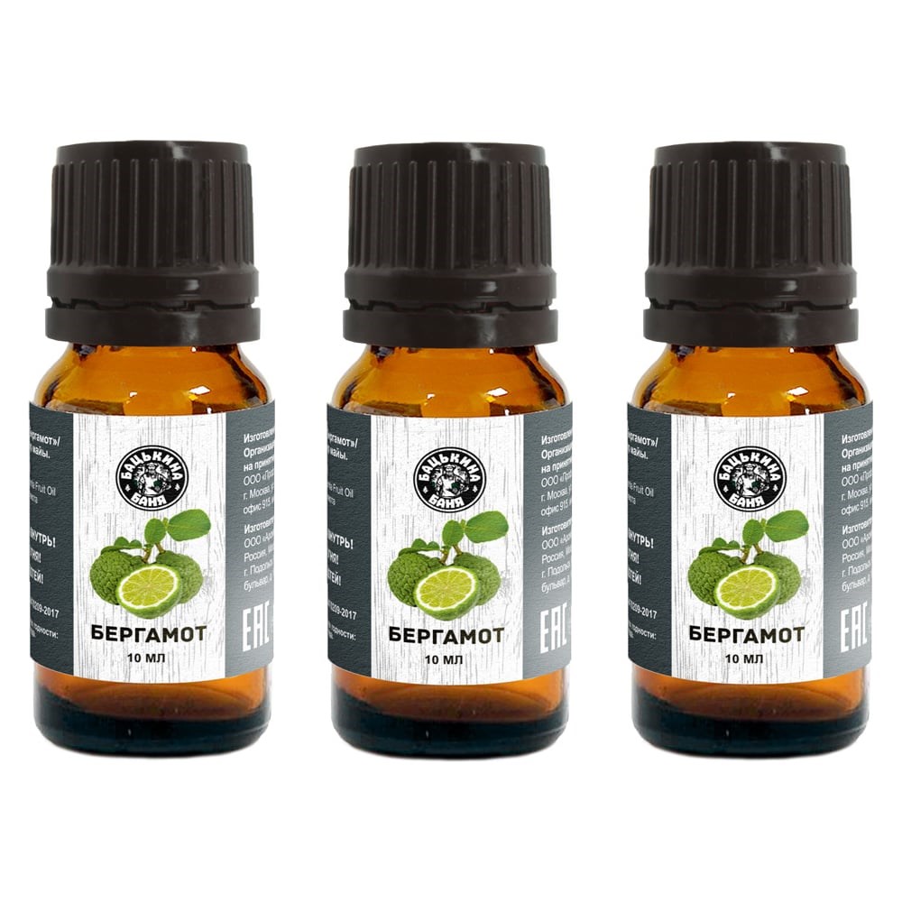 Эфирное масло Бацькина баня Бергамот 3 шт. натуральные аромамасла для бани 16002-3-набор-ВИ используется для снятия стресса, для успокоения и омоложения кожи. Данное масло выделяется тонизирующим и успокаивающим эффектом, что делает его идеальным средством для избавления от тревоги и печали. Ароматическое масло применяется для ароматизации дома, ванны, обогащения кремов и шампуней, аромамедальонов, как косметика, для массажа, как уход за кожей лица и тела, изготовления смеси от целлюлита, от прыщей и растяжек, как антистресс. Масло эфирное можно добавлять в крем для лица, для рук, для тела, для ног, чтобы усилить его свойства. Бомбочка для ванны с добавленными в нее капельками масла, сделает процесс более приятным и расслабленным. Аромамасло можно добавлять в увлажнитель, аромадиффузор, аромалампу, саше, что добавит вашему дому яркий аромат. Аромамасло предназначено для использования в паровой бане и сауне, для дома, ванны и душа. Бергамот отлично подходит как добавка в масло для волос, для тела, для лица, косметическое. Масло для бани позволяет создать в парной расслабляющую и приятную атмосферу с приятным свежим ароматом. Эфирное масло натуральное как ароматизатор для бани хорошо сочетается с эфирными маслами эвкалипта, лимона, кедра и иланг-иланг. Проверяйте непереносимость для эфирных масел.
