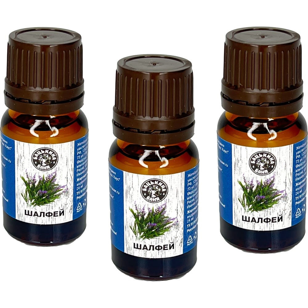 Эфирное масло Бацькина баня Шалфей 3 шт. натуральные аромамасла для бани 17054-3-набор-ВИ применяется для ароматизации дома, ванны, обогащения кремов и шампуней, аромамедальонов, как косметика, для массажа, как уход за кожей лица и тела, изготовления смеси от целлюлита, от прыщей и растяжек, как антистресс. Это мощный афродизиак для женщин и мужчин. Аромамасло можно добавлять в увлажнитель, аромадиффузор, аромалампу, саше. Эфирное масло предназначено для использования в паровой бане и сауне, для ванны и душа. Ароматические масла избавляют от целлюлита. Аромамасла используют как ароматизатор для дома и гардероба, для медитации и йоги.