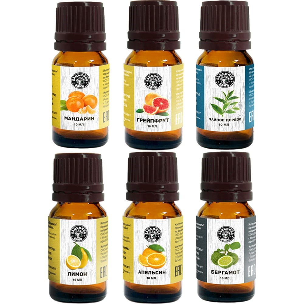 Эфирные масла Бацькина баня Цитрусовый микс Бодрость 6 шт. 16-6-набор-цитрус-ВИ - набор для бани и сауны, содержит в себе натуральные органические эфирные масла - 6 штук по 10 мл. Состав набора смотрите на фото. Ароматическое масло применяется, как косметика, для массажа, защита при солнечных ожогах, как уход за кожей лица и тела, изготовления смеси от целлюлита, от прыщей и для ароматизации дома, ванны, обогащения кремов и шампуней, аромамедальонов. Аромамасло подходит для нанесения на волосы, как косметическое масло для лица. Масла применяются в мыловарении, изготовлении свечей. Эфирное масло используется в паровой бане и сауне. Косметический эффект масел сохраняет красоту кожи лица и тела, здоровье волос. Аромамасло избавляет от целлюлита. Уход за телом и лицом. Аромамасла подходят для аромалампы, саше, аромадиффузор. Используется, как жидкий ароматизатор для дома, для медитации и йоги, для расслабления или для поднятия настроения. Проверяйте непереносимость для эфирных масел.